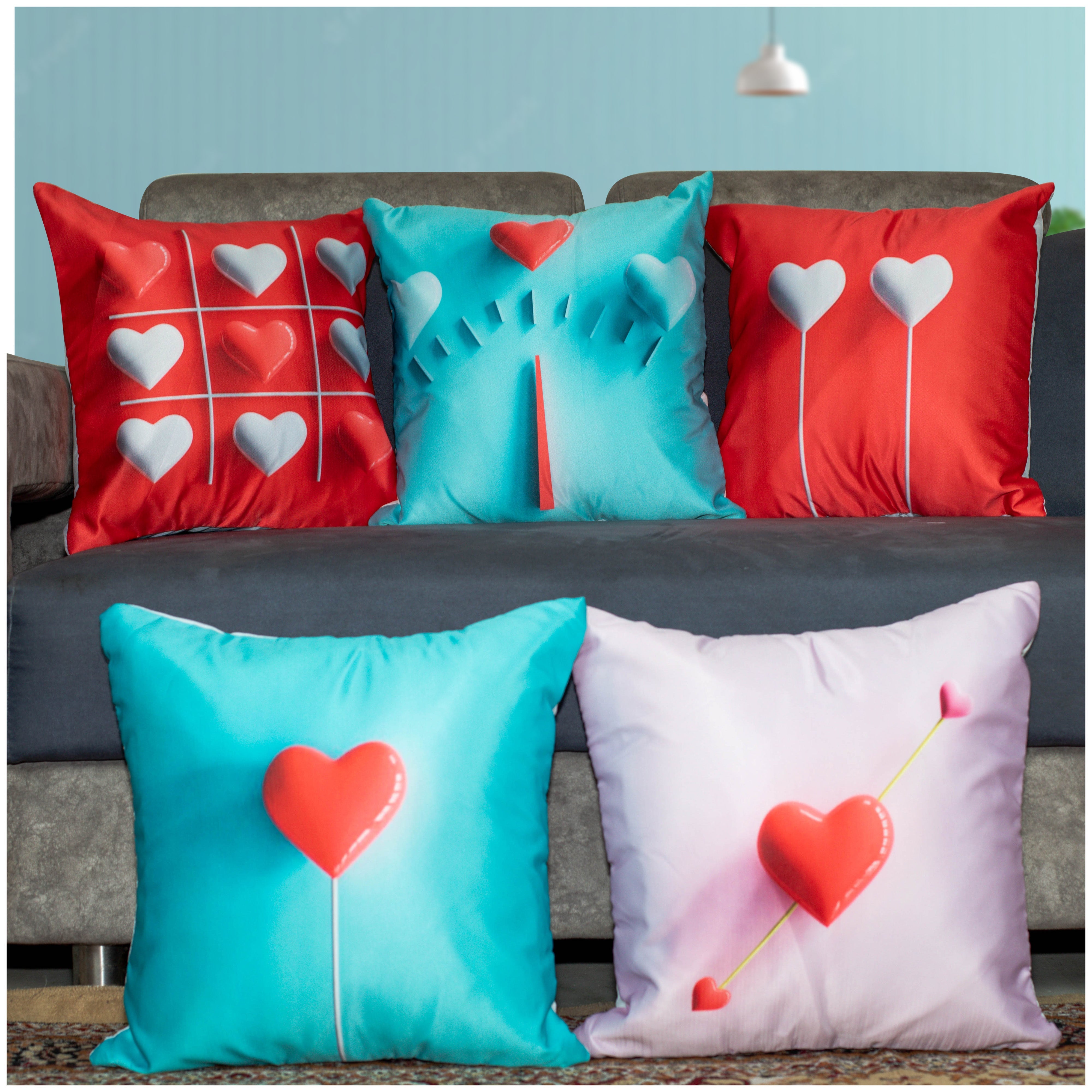 Vendola Satin 250TC Decorative Cushion Pillow Covers, Multicolor, Set of 5 Cushion Covers(Lollipop)