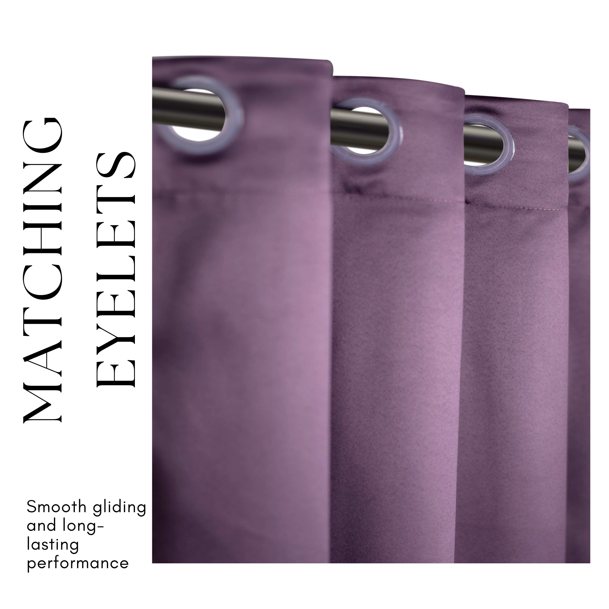 Transform your space with these rich plum blackout curtains designed for both style and performance. Crafted from thick, high-quality blackout fabric, they ensure maximum privacy, light blocking, and energy efficiency. These 7-foot-long curtains are perfect for windows or doors and come with color-matched tie backs for added elegance. The precision stitching and rust-free grommets provide a neat, tailored look and easy installation. Perfect for modern homes looking to blend aesthetics with comfort.
