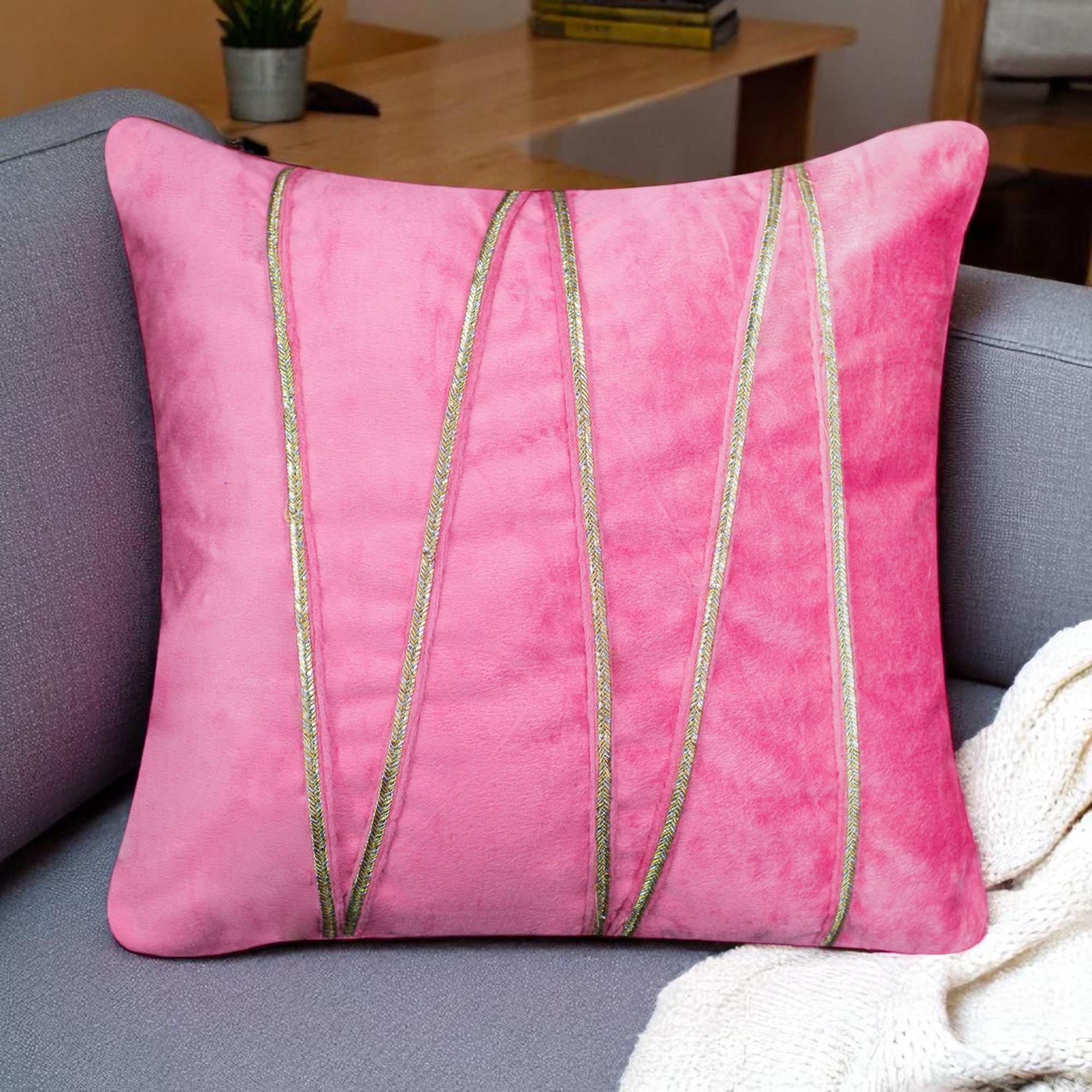 Add a luxurious charm to your living space with these velvet cushion covers, artistically detailed with graceful golden lace. The rich texture and modern pattern blend beautifully with any décor—be it classic, contemporary, or festive.