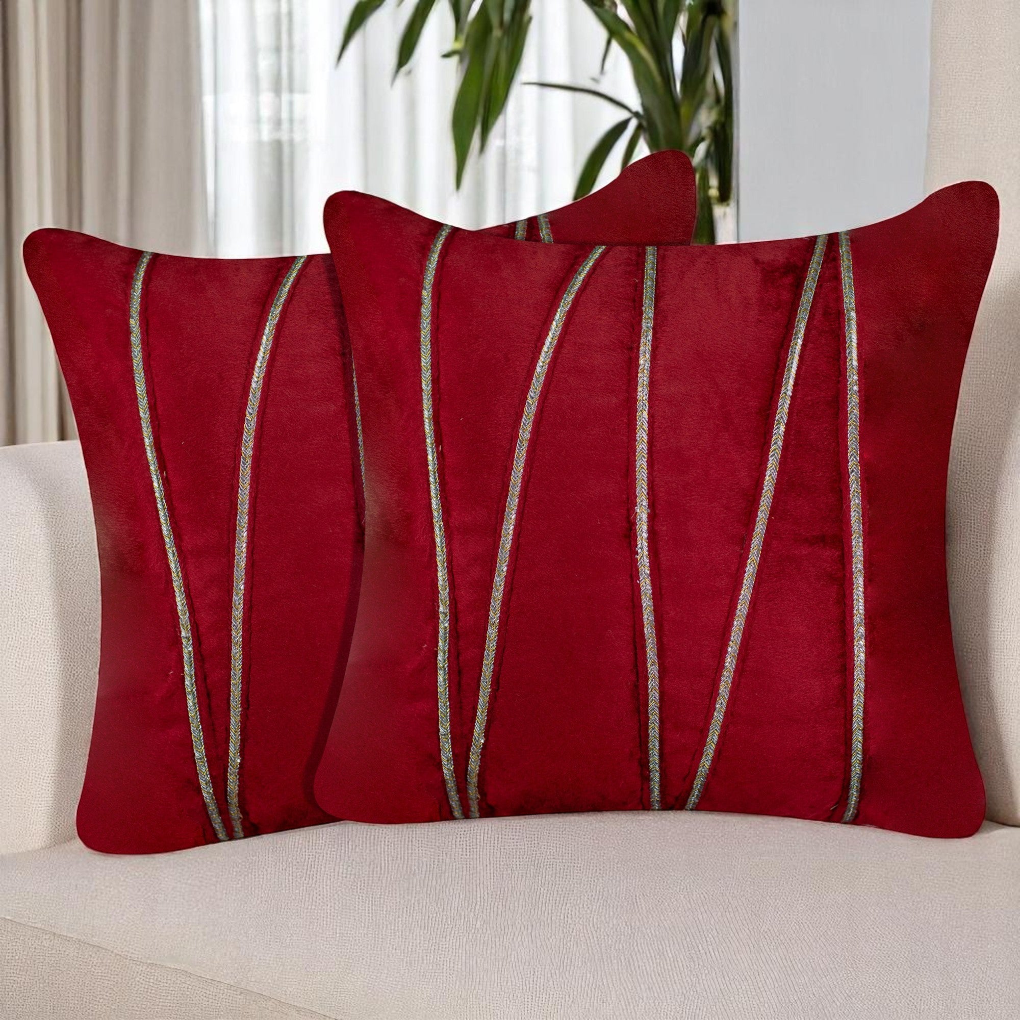 Vendola Premium Velvet Cushion Covers with Elegant Golden Lace Detailing
