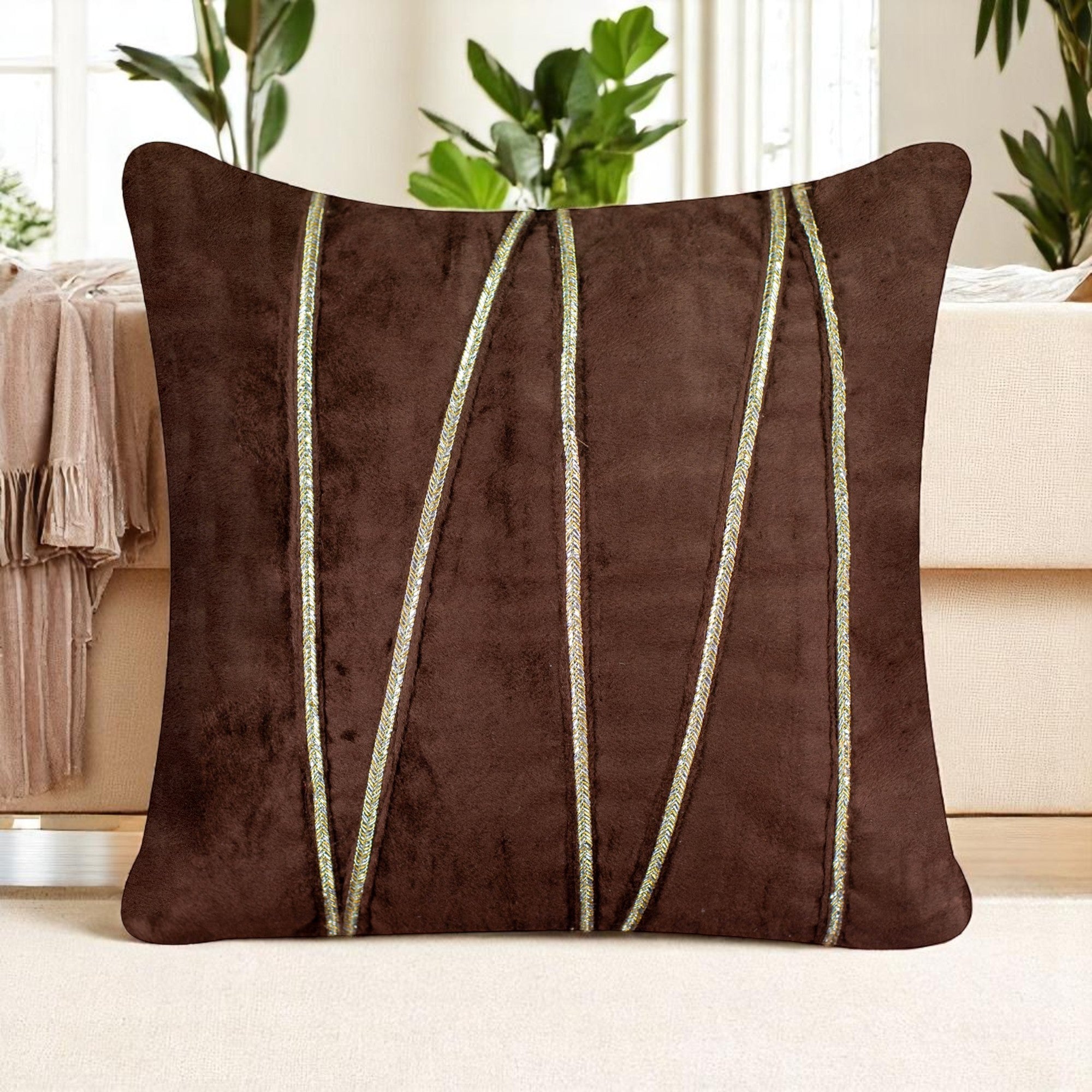 Vendola Premium Velvet Cushion Covers with Elegant Golden Lace Detailing