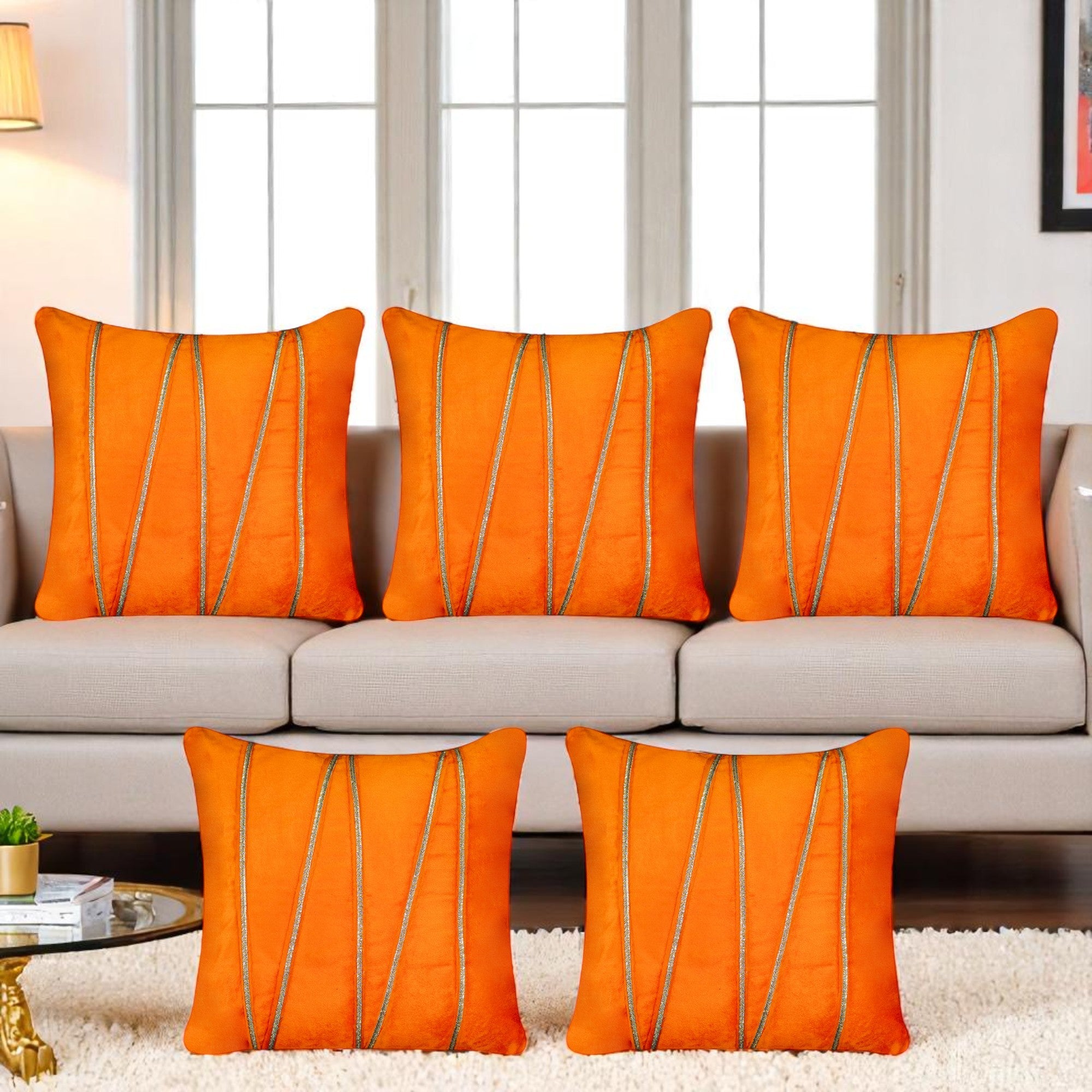 Vendola Premium Velvet Cushion Covers with Elegant Golden Lace Detailing