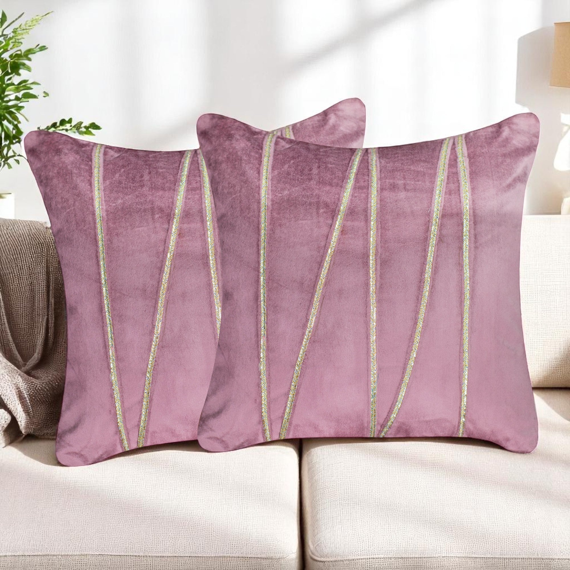 Vendola Premium Velvet Cushion Covers with Elegant Golden Lace Detailing