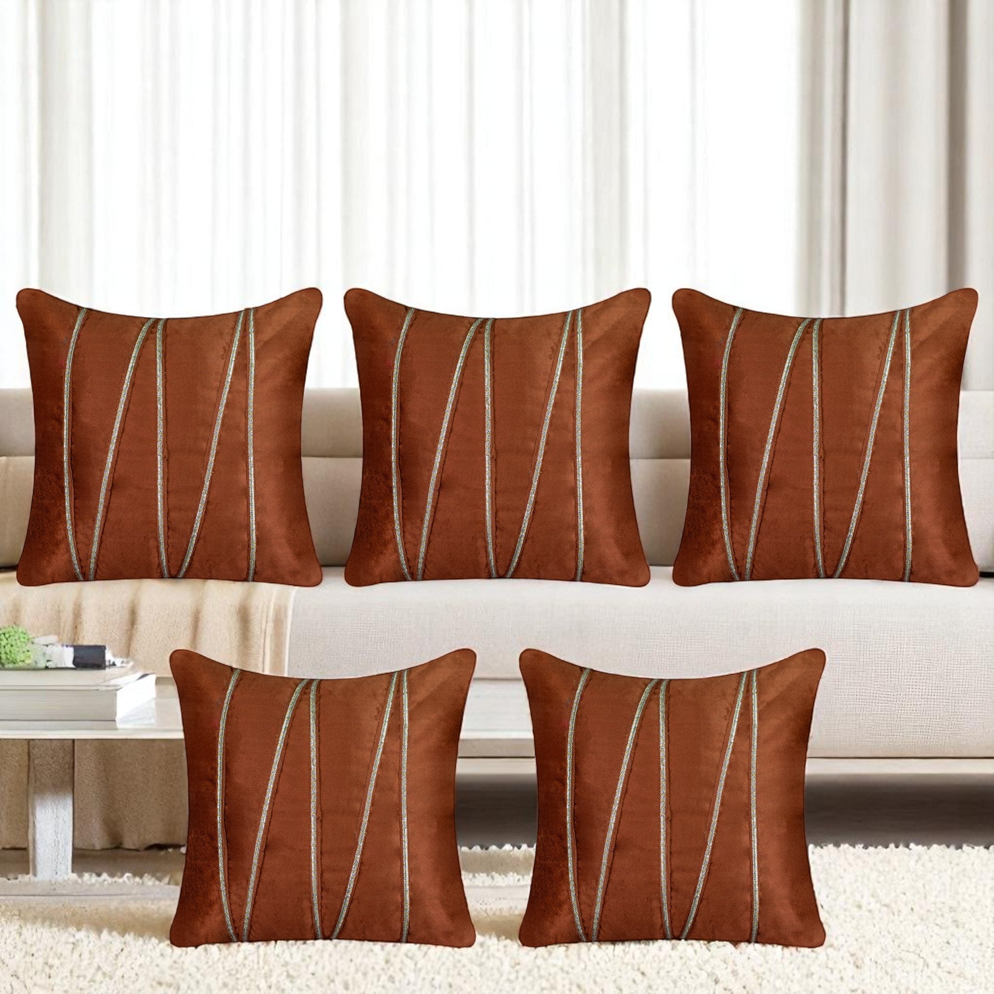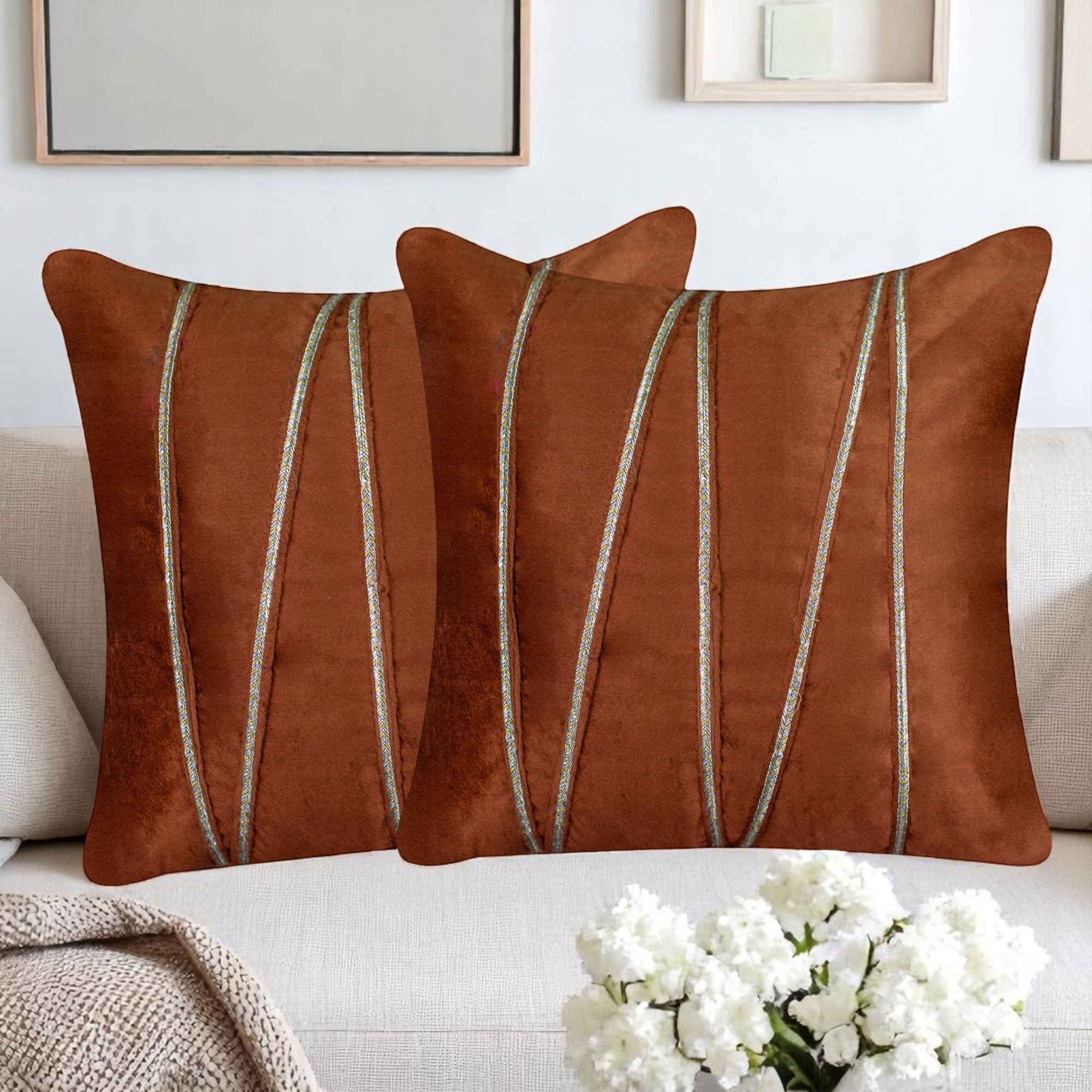 Vendola Premium Velvet Cushion Covers with Elegant Golden Lace Detailing