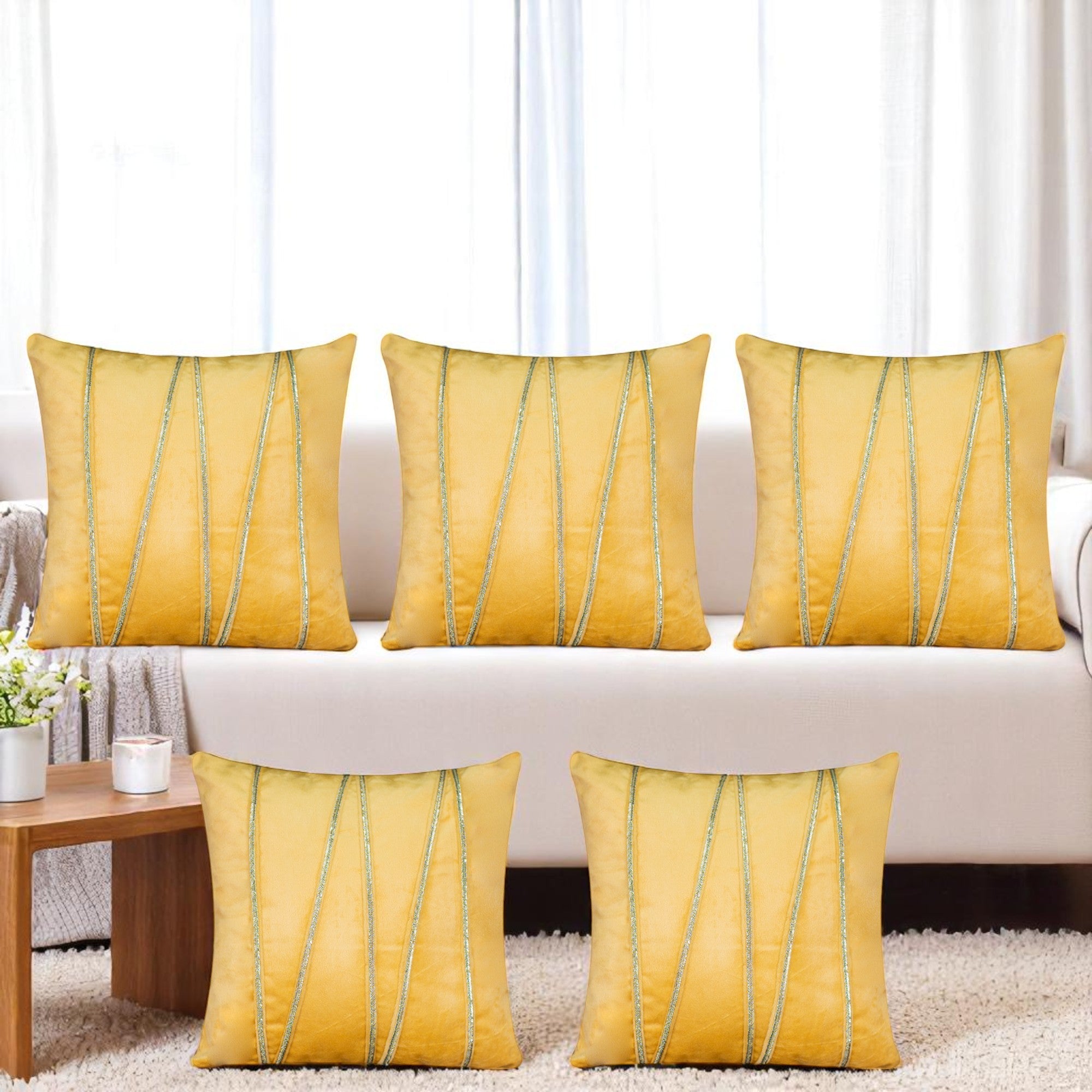 Vendola Premium Velvet Cushion Covers with Elegant Golden Lace Detailing