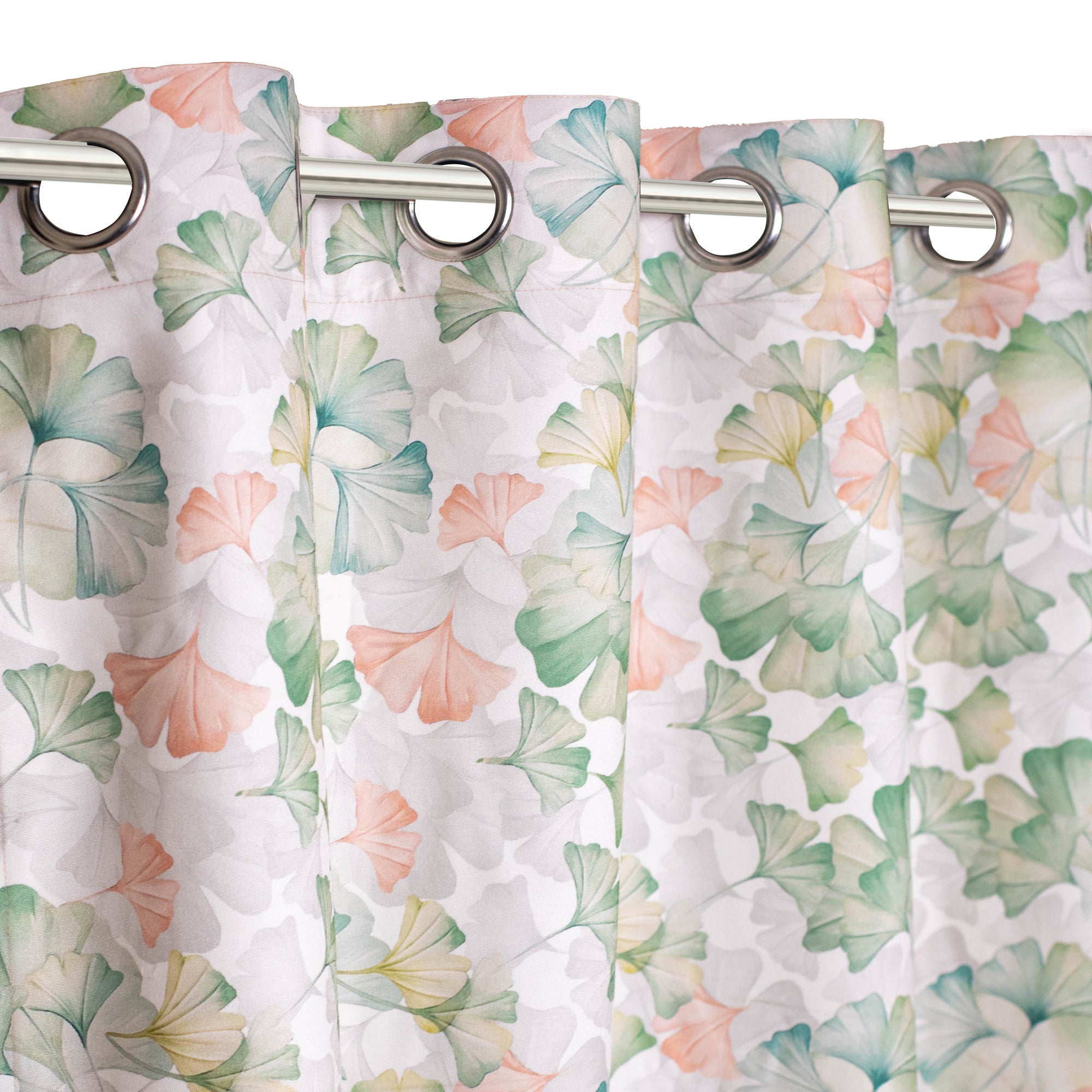 Vendola Floral Printed Matty Cotton Curtains for Windows & Doors | Stainless Steel Eyelets | Soft & Durable Fabric | Room Darkening & Privacy | Ginkgo Leaf Design | Living Room, Bedroom, Kids Room Decor
