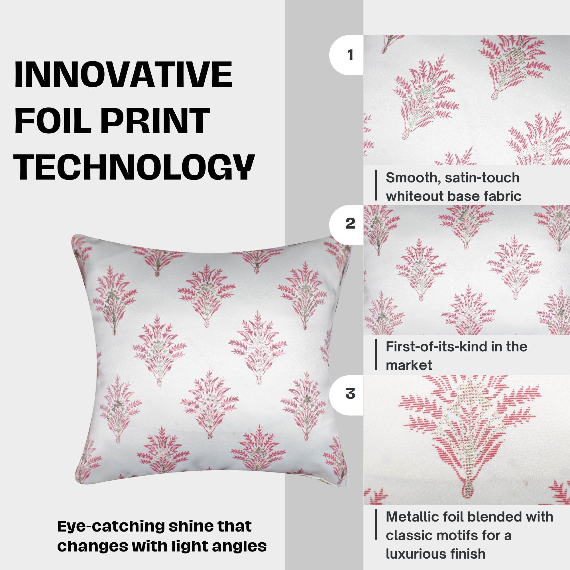 Vendola Satin Whiteout Cushion Covers with Foil & Printed Design