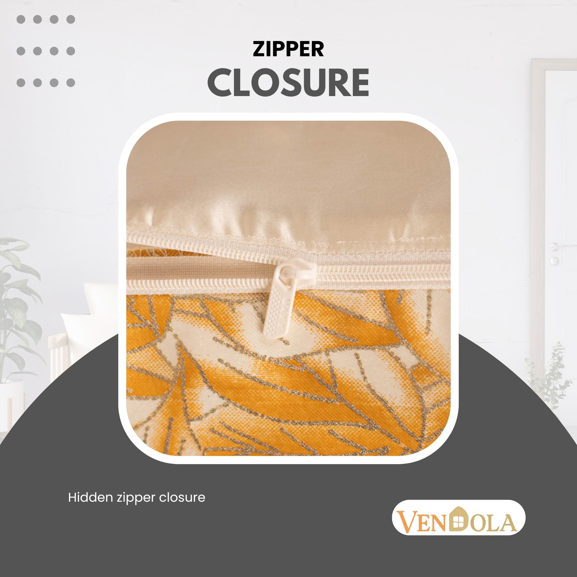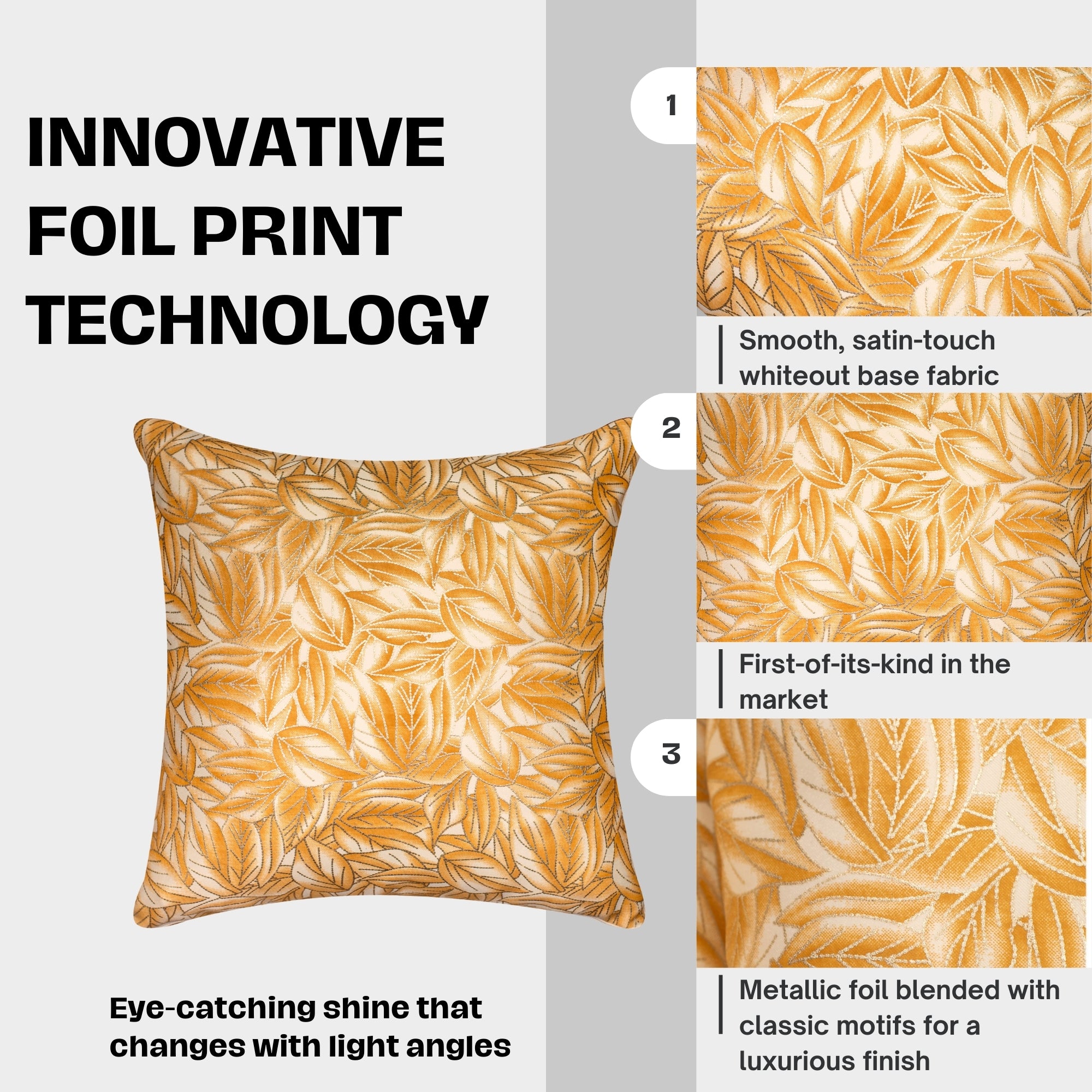 Bring home a touch of elegance with these luxurious cushion covers by Vendola. Made from smooth satin in a rich whiteout finish, these covers feature a graceful combination of foil detailing and printed design work. A perfect blend of modern charm and timeless appeal to enhance your living room or bedroom.