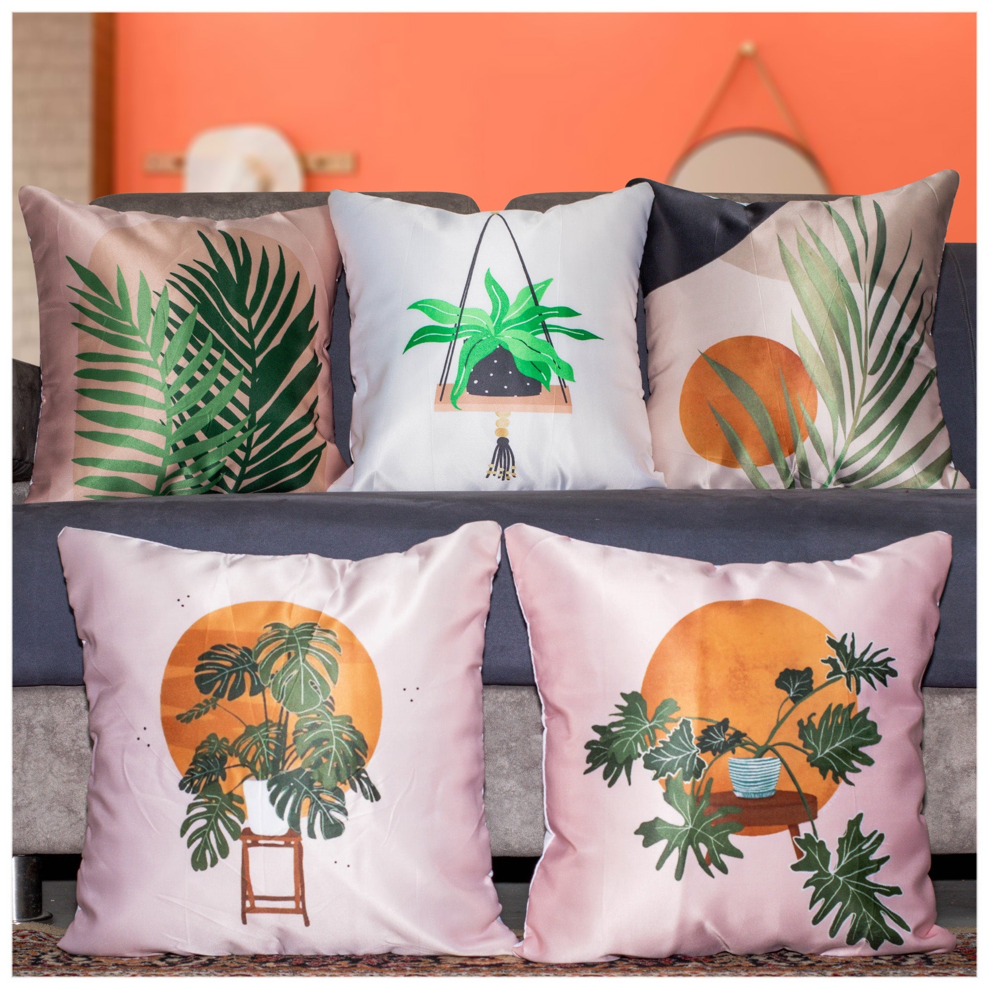 Decorate your room and sofa with the very stylish Vendola's beautiful Salmon Pink digital print cushion covers. We carefully hand stitched for stronger stitch quality. The prints are very trendy and are designed with ultra modern and elegant designs our cushion covers comes in 16X16 Standard size with Jute Satin Blend fabric digitally printed in HIGH DEFINITION. The set contains 5 cushion covers which is durable and anti static, machine wash able and very easy to wash. The zippers are hidden and is not easily seen and are smooth and easy to operate. Perfect decoration suitable for you home, office, coffee shop, etc. Compliment your interior/home with this trending Salmon Pink designs cushion covers.
